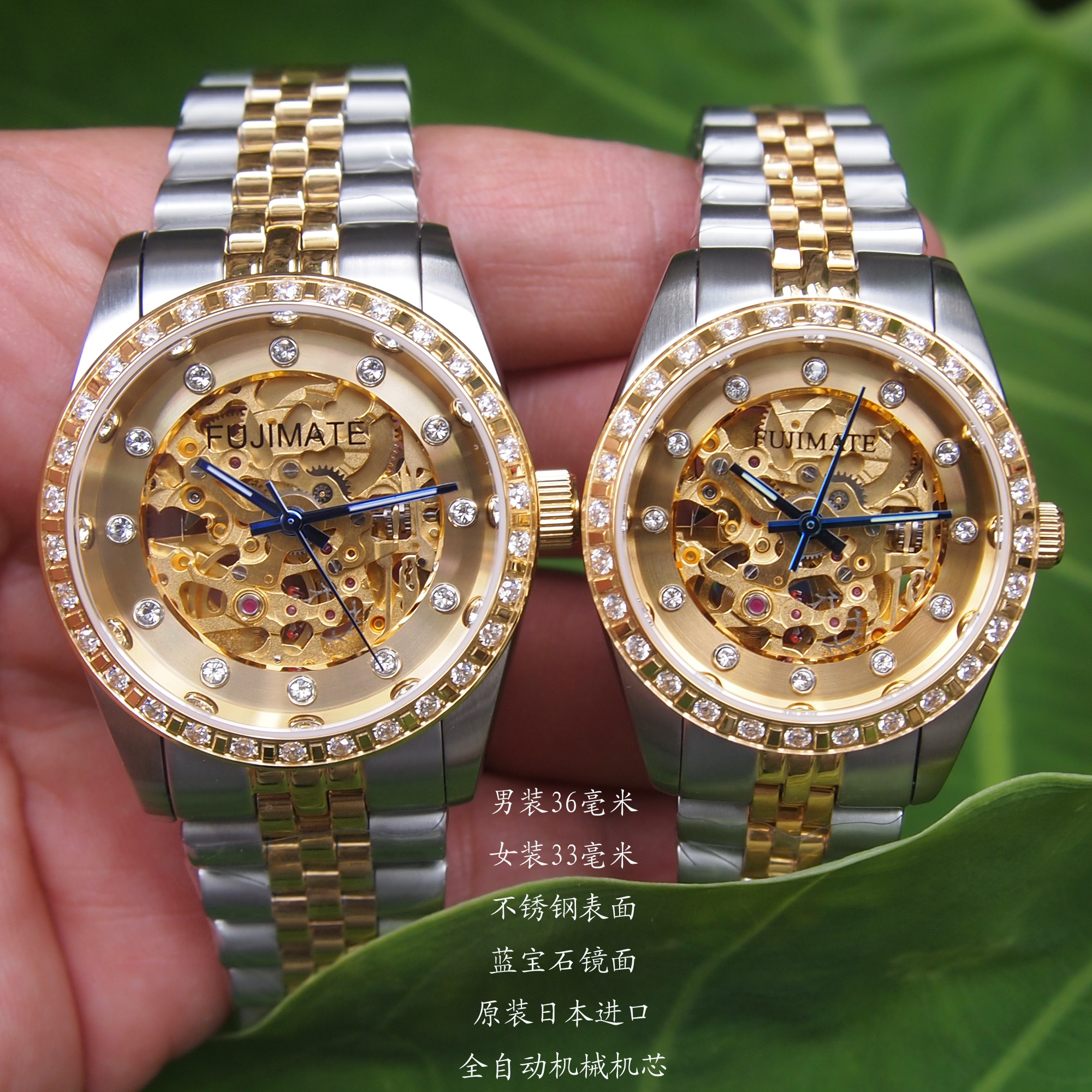 男36毫米,女33毫米 | 同左边,机芯银白色 |