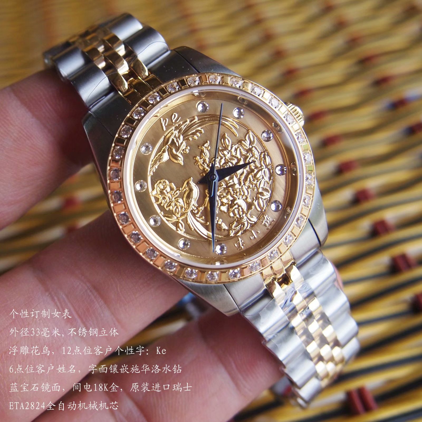 L688011不锈钢立体浮雕生肖牛间镶钻个性订制全自动机械女表